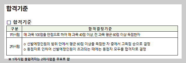 - 합격 기준: 과목별 40점 이상 + 전 과목 평균 60점 이상