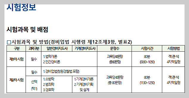 과목: 경비업법 (필수) + 선택과목 (택1)