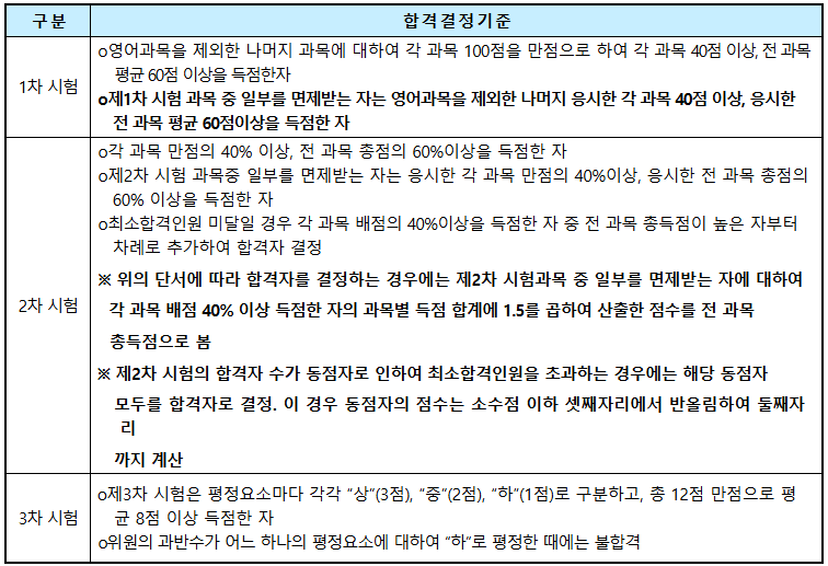 | 제 3차 시험 | 시험과목 | 시험방법 |