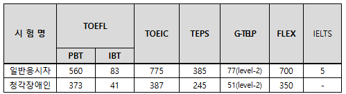 공인 어학성적(영어) 기준점수